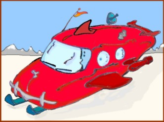 snowmobile can quickly convert to a boat or a winged flying machine.